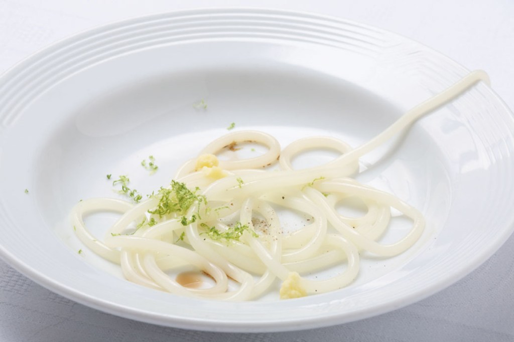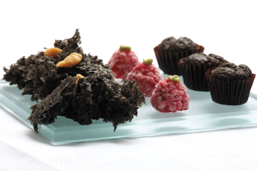 De hecho, uno de los platos que probé, llevaba un crocante de harina de sagú coloreado con tinta de calamar. Se llamaba Trucha, curuba, miel de bosque andino, musgo de mar y sagú.
