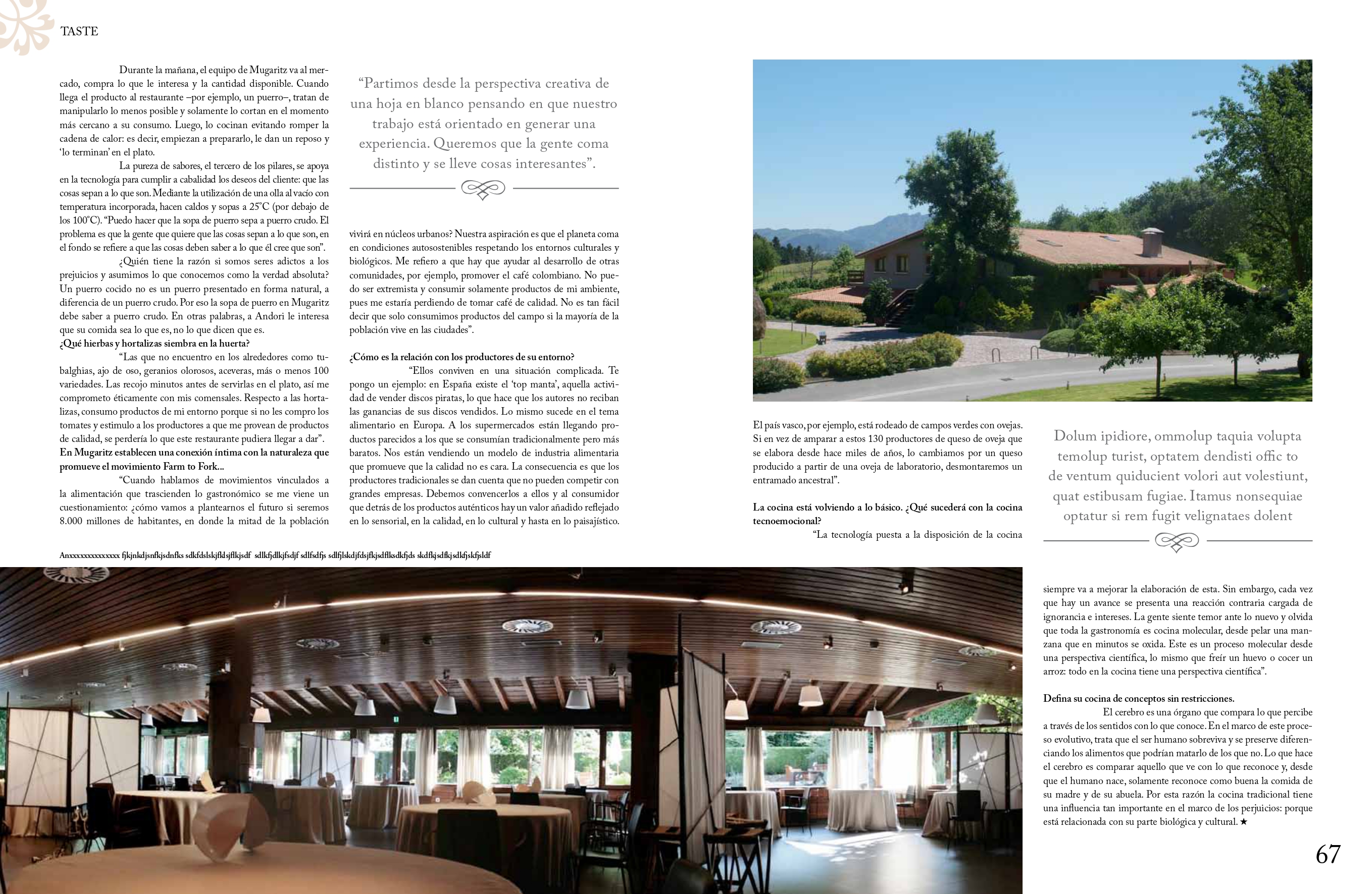 A.L.A: Cuando hablamos de movimientos vinculados a la alimentación que trascienden lo gastronómico se me viene un cuestionamiento: ¿cómo vamos a plantearnos el futuro si seremos 8.000 millones de habitantes, en donde la mitad de la población vivirá en núcleos urbanos? Nuestra aspiración es que el planeta coma en condiciones autosostenibles respetando los entornos. culturales y biológicos.