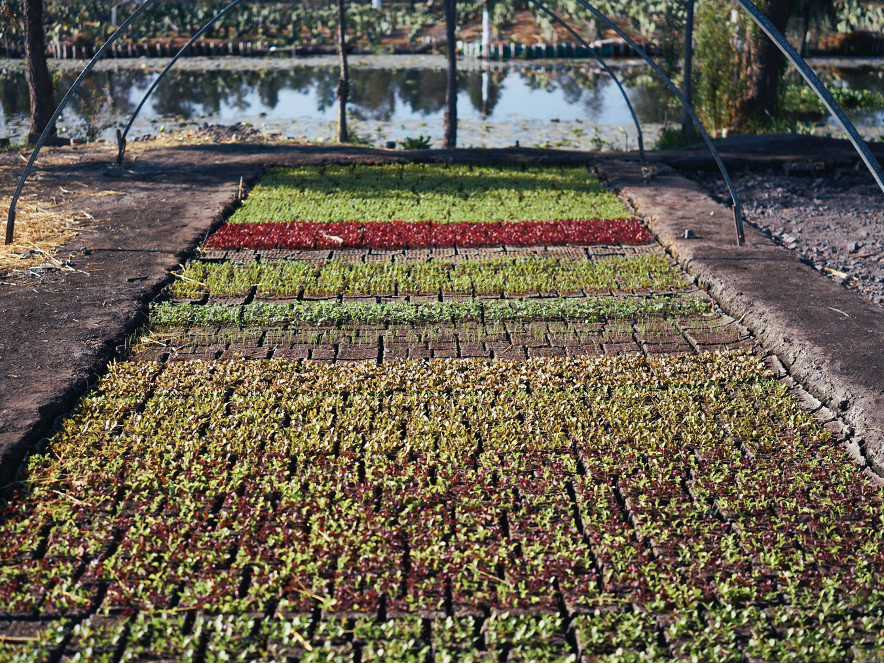 El resultado: una gran variedad de vegetales y hortalizas frescos, nutritivos y de alta calidad como lechuga, hierbas de olor, cebolla, jitomate, cilantro, rábano, nopal, flor de calabaza, zanahoria, chilacayotes, col, espinaca, nabo, brócoli, calabaza, coliflor y japaleños, entre otros, dependiendo de la temporada.