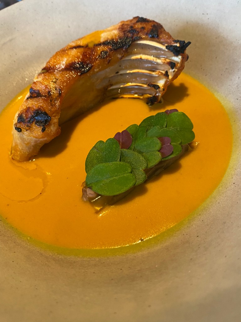 Este plato me recordó el sorbete de curuba que acompaña al tradicional ajiaco, mientras que el crocante se asemeja a cómo luce la cordillera de los Andes desde el avión.